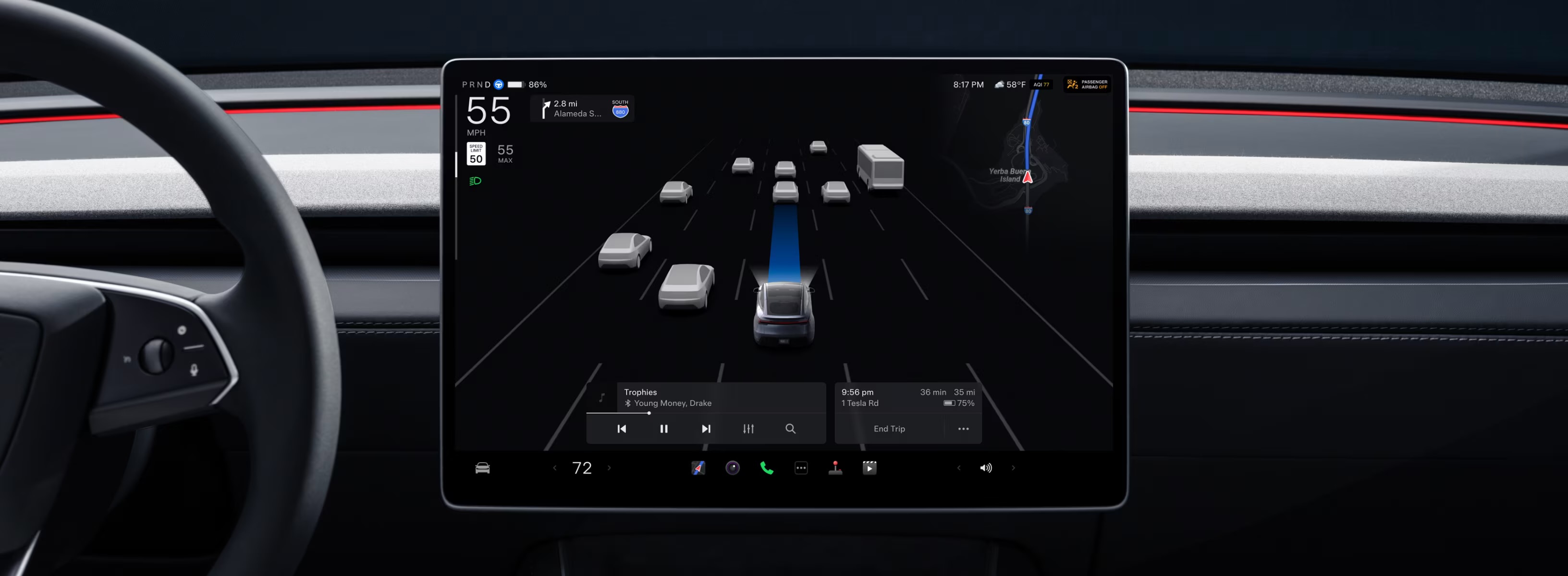 Full self-driving capabilities, an advanced driver assistance system designed for more active guidance under driver supervision.